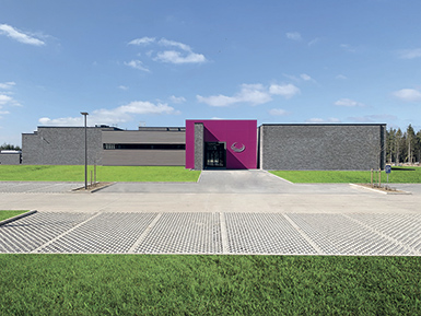 Les couvre-sols assurent un liaisonnement entre les lignes régulières du bâtiment de haute qualité architecturale qui se fond dans la masse végétale du parc cinéraire forestier.